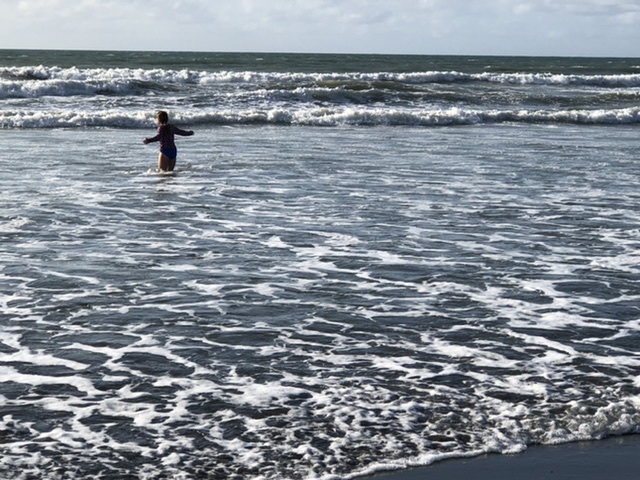 Departed Opunake and stopped to check out beach at Oakura on route. Again black sand beaches, big waves, windy, chilly water, people contemplating surfing and wind-sailing.