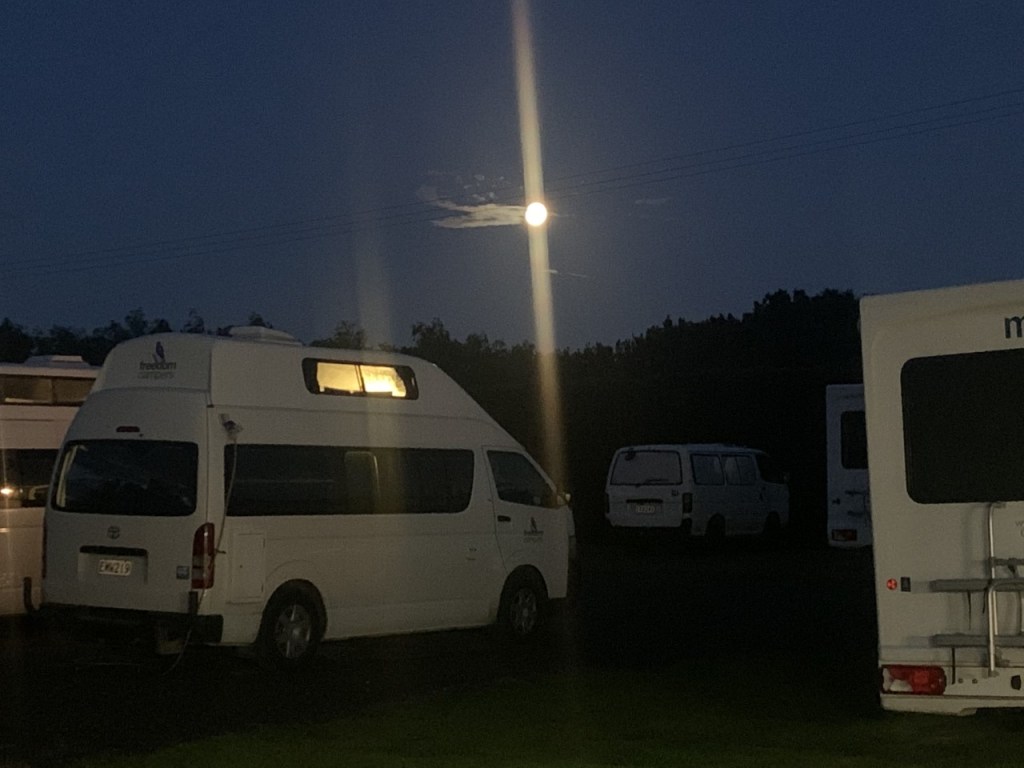 More Details: Morning ocean excitement for Jade and Immy again as they saw with others orcas?! They ran back to get us but then they were gone. Vicki and Immy part ways with us for now. Drive to campground in Kingswell overnight and pack and prepare for Stewart Island adventure tomorrow. Jade painted a number of white rocks that we had collected north of Kaikoura and hid them around the campground. Found out later that Immy found them when they came along later. Jade befriended the campground cat.