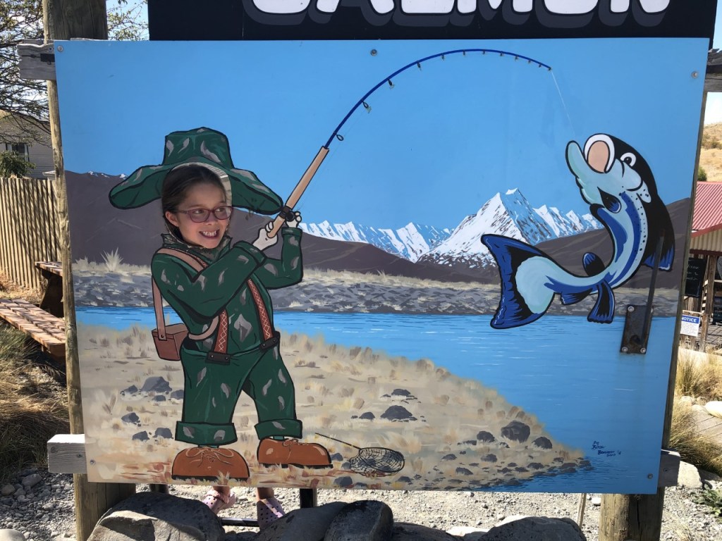 Hi. Today we left Bannockburn finally. Then we went to a fish place and got to feed Salman. Mommy had to go to the bathroom really bad so we did that and played at the playground. Then played at the lake it was spectacular. Wen we got at the campground we had dinner. THE END. P.S. We went to twizel town. We got to have snacks and played at a awesome playground. It was mega awesome.